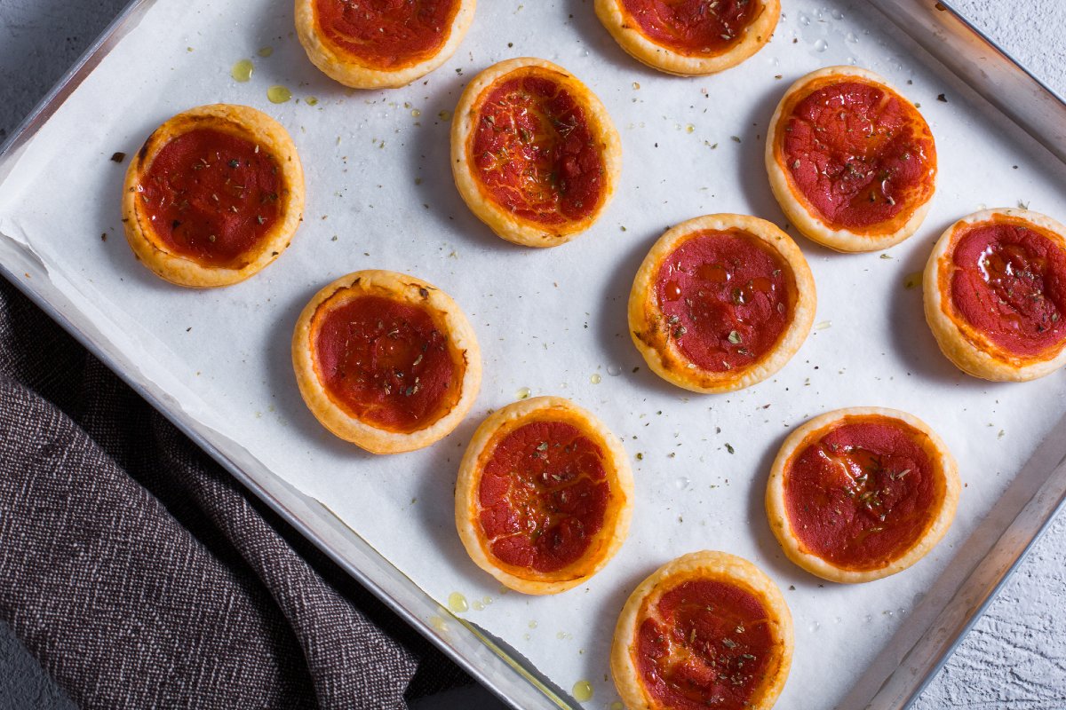 For a birthday party or an appetizer, snacks and mini pizzas are always a must... if time is short, the solution is puff pastry mini pizzas! An appetizer with ready-made puff pastry, easy and quick to make even at the last minute. We offer you the classic version: only two ingredients, tomato and oregano, a basic recipe that you can personalize by adding your favorite ingredients. Perfect for whetting the appetite even on the most important holidays, such as Christmas and New Year's, these puff pastry mini pizzas will delight your guests!