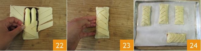and vice versa 22 until you completely cover the filling 23. Gradually transfer the twists to a baking tray lined with parchment paper 24.