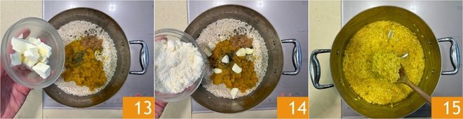 Cream with butter 13 and grated Parmigiano Reggiano DOP 14. Stir to combine everything 15.