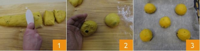 If you don’t have the indicated loaf pans, if you only have one, or if you prefer to give a different shape to this dough, you can proceed as indicated above to make the dough. Once it has risen, form it into a loaf to get 8 pieces, each about 4.6 oz 1: shape each into a ball 2 and place them on a baking sheet lined with parchment paper, well-spaced apart from each other 3.
