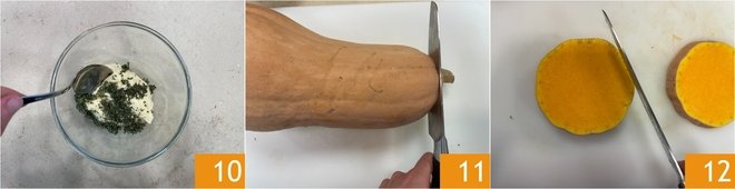 Mix and store in the refrigerator 10. Now focus on the cutlets: trim the pumpkin 11, cut slices about 0.6 inches thick 12 and remove the skin; you will need about 500 grams (about 1.1 lbs) of cleaned pumpkin.