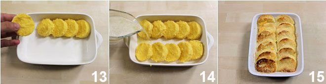 arrange the pumpkin gnocchi alla romana in rows, slightly overlapping each other 13. Melt the remaining butter and drizzle over the gnocchi 14, finally sprinkle with the remaining Parmigiano and bake in a preheated oven at 390°F for about 20-25 minutes, until a beautiful golden crust forms 15. The pumpkin gnocchi alla romana are ready!