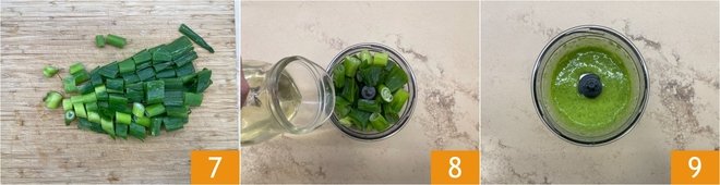 Cut the tops into pieces 7 and place them in a blender, adding the seed oil 8. Blend for at least 2/3 minutes 9 intermittently.