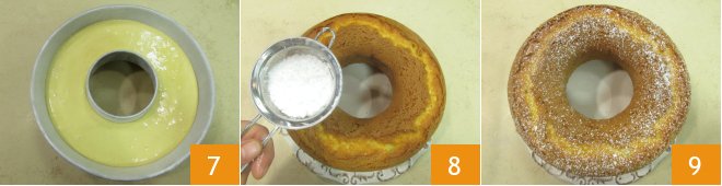 Pour the mixture into a 9-inch Bundt pan 7. Bake the dessert in a preheated static oven at 340°F for about 50 minutes. Before removing from the oven, check that the dessert is cooked with the toothpick test: if it comes out dry, the dessert is ready. Let the quick and easy dessert cool slightly, then turn it out onto a rack to cool completely, and finish your quick and easy dessert recipe with a dusting of powdered sugar 8 9.