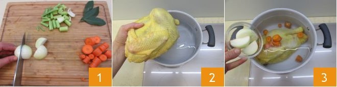 To prepare the ravioli with capon broth, start by making the broth. Take the carrots, peel them, and cut them into chunks; after cleaning the onion, cut it as well as the celery into chunks 1. Now take a pot with a non-stick bottom and high sides: pour in plenty of water and add the cleaned capon (and possibly singe it if there's too much plumage). The water should completely cover the capon. Add the carrots and onions as well 3.