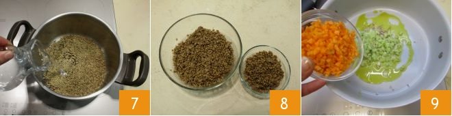 place them inside a pressure cooker, pour the water in to cover them completely 7. Close the pot and cook for 20 minutes, then let them cool 8. In a non-stick pot, sauté the oil with the shallot, garlic, celery, and finely chopped carrot over low heat 9.