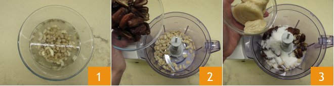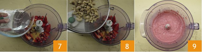 Add the melted coconut oil (either in a pot or microwave) 7, and lastly, thoroughly rinse the cashews and add them as well 8. Activate the processor until you get a smooth cream 9.