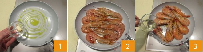 To prepare the reginette with shrimp and peppers, start by heating the oil in a large pan and fry the garlic with its skin 1. Once it is browned, remove it from the pan. At this point, add the shrimp that you have washed thoroughly with plenty of water. Let your shrimp flavor for about two minutes 2. Then add the wine 3.