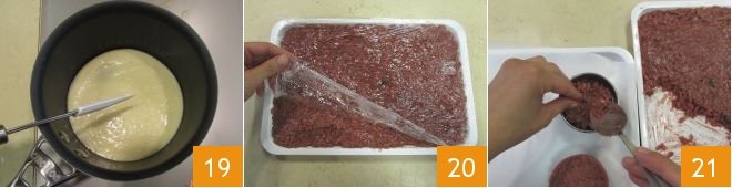 until you achieve a rather fluid consistency 19. Shape your burgers: take the cold rice 20, scoop about 2 oz (60 grams) of rice, and shape it using a 3-inch ring mold 21, pressing the rice firmly.