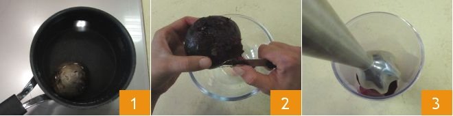 To make the rice and beetroot burger with Grana Padano sauce, start by carefully washing the beetroot and then cooking it whole, with the skin on, in plenty of unsalted water for about 70 minutes or until it is tender 1. Remember to save the beetroot cooking water because you'll need it to cook the rice. Once the beetroot is cooked, peel it 2 and blend it using a hand blender 3;