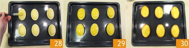 Mix the egg yolk and rice milk in a small bowl, transfer the pasticciotti to a baking tray and brush each one 28. At this point 29, bake in a preheated static oven at 350°F for 30 minutes, on the middle shelf. When they are golden, your pasticciotti are ready to be removed from the oven 30. Serve them warm or cold.