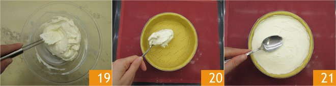 Set the cream aside 19. After the necessary time has passed, fill with the ricotta cream 20 and level with the back of a spoon 21.