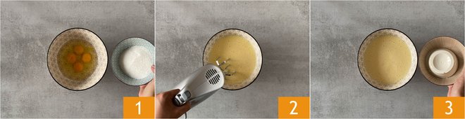 To prepare the ricotta and pear bundt cake, start with the eggs: beat them with the sugar 1 until you get a smooth and frothy mixture 2. Add the ricotta 3.