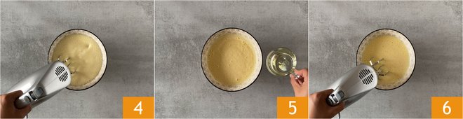 Incorporate it with the electric beaters 4. Add the seed oil slowly and continue to beat 5 6.