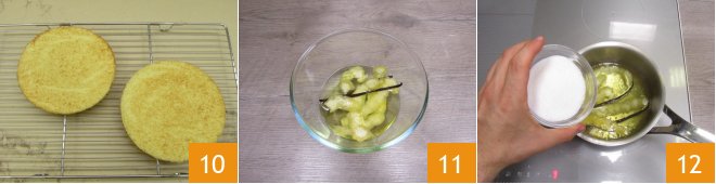 Once baked, flip them onto a rack and gently peel off the parchment paper while they are still hot. Then let them cool completely 10. Prepare the lemon syrup by infusing the lemon zest and vanilla bean for an hour. After the time has passed, pour everything into a saucepan, add the sugar 12