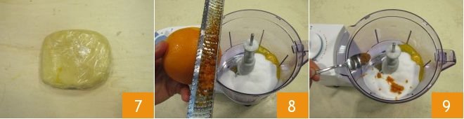 which you can wrap and allow to rest in the refrigerator for at least half an hour 7. Meanwhile, make the cream. In a mixer pour the egg yolks together with the sugar and grate the orange peel 8, then add the cinnamon powder 9.
