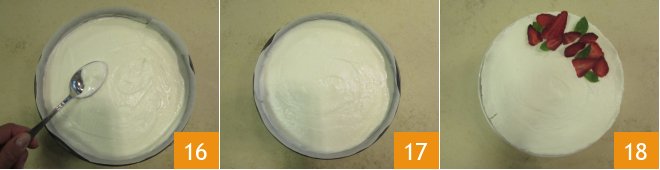 level with the back of a spoon 16 and let it rest in the refrigerator for at least 12 hours 17. Your ricotta cheesecake is ready, decorate as desired with strawberry slices and some mint leaves 18.