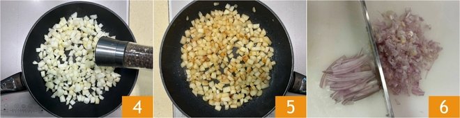 Salt, pepper 4, and caramelize them for a few minutes over medium heat 5. In the meantime, clean and finely chop the shallot 6.
