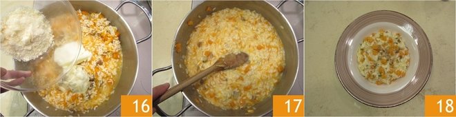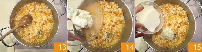 Mix well and turn off the heat 13. Add the gorgonzola 14 and the remaining butter 15.