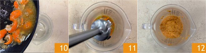 Transfer everything into a glass 10 and blend with an immersion blender 11 until you get a smooth and homogeneous cream 12.