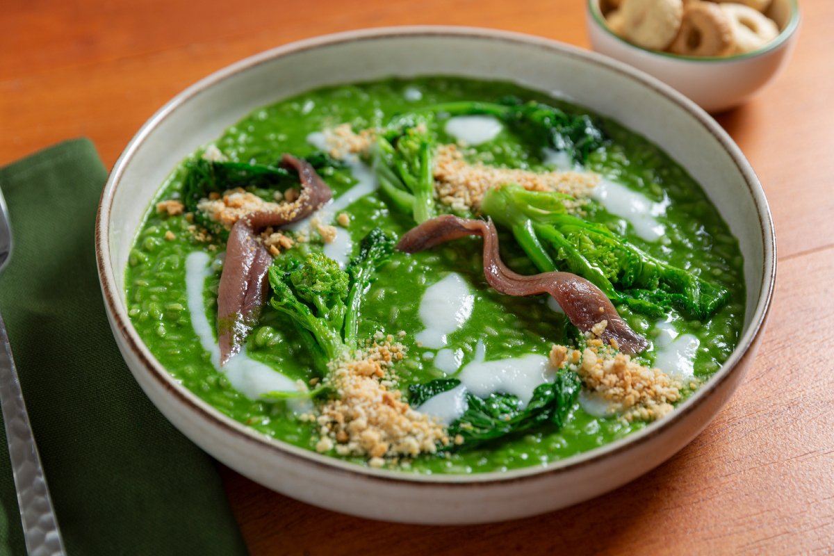 Garlic sauce risotto like this isn't dominated by just one flavor—it’s how everything works together. In Puglia, you’ll find other cime di rapa dishes, like rice salad with Ragusano cheese or pasta with nduja and stracciatella, but this garlic sauce risotto—which is awesome—stands out with its moist and velvety texture. The flavors are bold yet, really really good, giving you a taste of Apulian tradition with every bite.