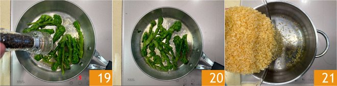 Adjust with salt and pepper 19 and sauté over high heat for a few minutes 20. In a saucepan, dry toast the rice for a few minutes 21.