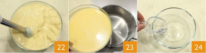 until you obtain a creamy sauce 22. Place the obtained sauce in a saucepan 23, meanwhile in a small bowl, place a couple of tablespoons of cold water 24