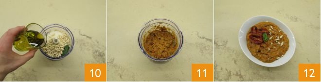 Finish by adding a pinch of salt and the oil 10. Blend until you have a smooth and homogeneous mixture 11. Your roasted tomato pesto is ready; now you just need to use it as you like 12!