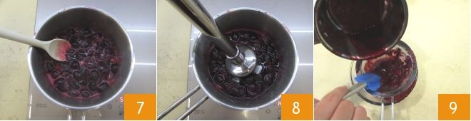 Add the sugar 4, then squeeze the lemon 5 and add the juice to the saucepan 6.