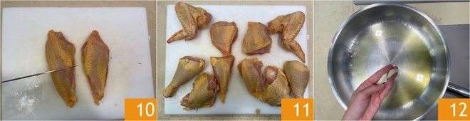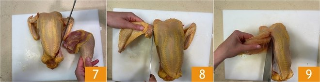 From these, cut drumsticks and thighs 7. Now also separate the wings 8 and the breast 9.