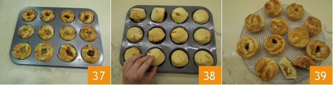 After this time, remove the roses from the oven 37 and turn them over, being careful not to burn yourself 38. Finish baking for another 15 minutes, then remove from the oven and serve your warm rose-shaped brioches 39.
