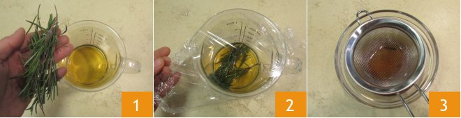 To prepare the rum and rosemary cake, first pour the rum into a pitcher and add the rosemary sprigs 1. Cover with plastic wrap and let it macerate at room temperature for at least a night 2. After this time, strain the rum to remove the rosemary 3.