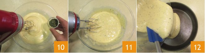 Finally, add the chopped rosemary 10 and mix to incorporate evenly 11. Butter a 9-inch diameter cake pan and pour the obtained mixture inside 12, then bake in a preheated static oven at 350°F for about 40 minutes.