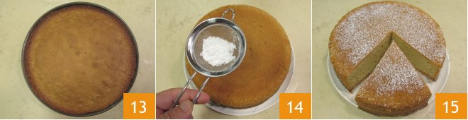 After the baking time (always check with a toothpick), take out the cake and let it cool slightly in the pan 13. Once cooled, flip it onto a serving plate and dust the surface with powdered sugar 14. Your rum and rosemary cake is ready to be enjoyed 15!