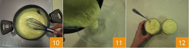 and continue to stir until it thickens 10. It will take just a few minutes. At this point, transfer to a bowl 11. To quickly lower the temperature of the cream, place the bowl inside another bowl with ice water, stirring continuously. Cover with plastic wrap and store in the refrigerator until ready to serve the cream. Before transferring it into cups or using it, we recommend lightly beating it with a whisk.