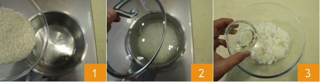 To prepare the salmon bites with grapefruit salad, start by cooking the rice. Take a high-sided saucepan and add water and rice 1. Cover with the lid and bring to a boil 2. When the water boils, lower the heat and let it cook on low heat for about 15 minutes. Never stir the rice while cooking. When it's cooked, transfer the rice to a bowl and add the vinegar 3.
