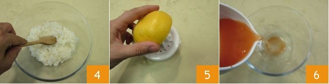 Gently stir the rice with a spoon or wooden spatula until it reaches room temperature (you can fan it with a small fan or a plastic plate to cool it and let the vinegar evaporate faster) 4 and set it aside. At this point, prepare the dressing. Take one of the grapefruits, squeeze it to obtain the juice 5. Then transfer it to a small bowl 6
