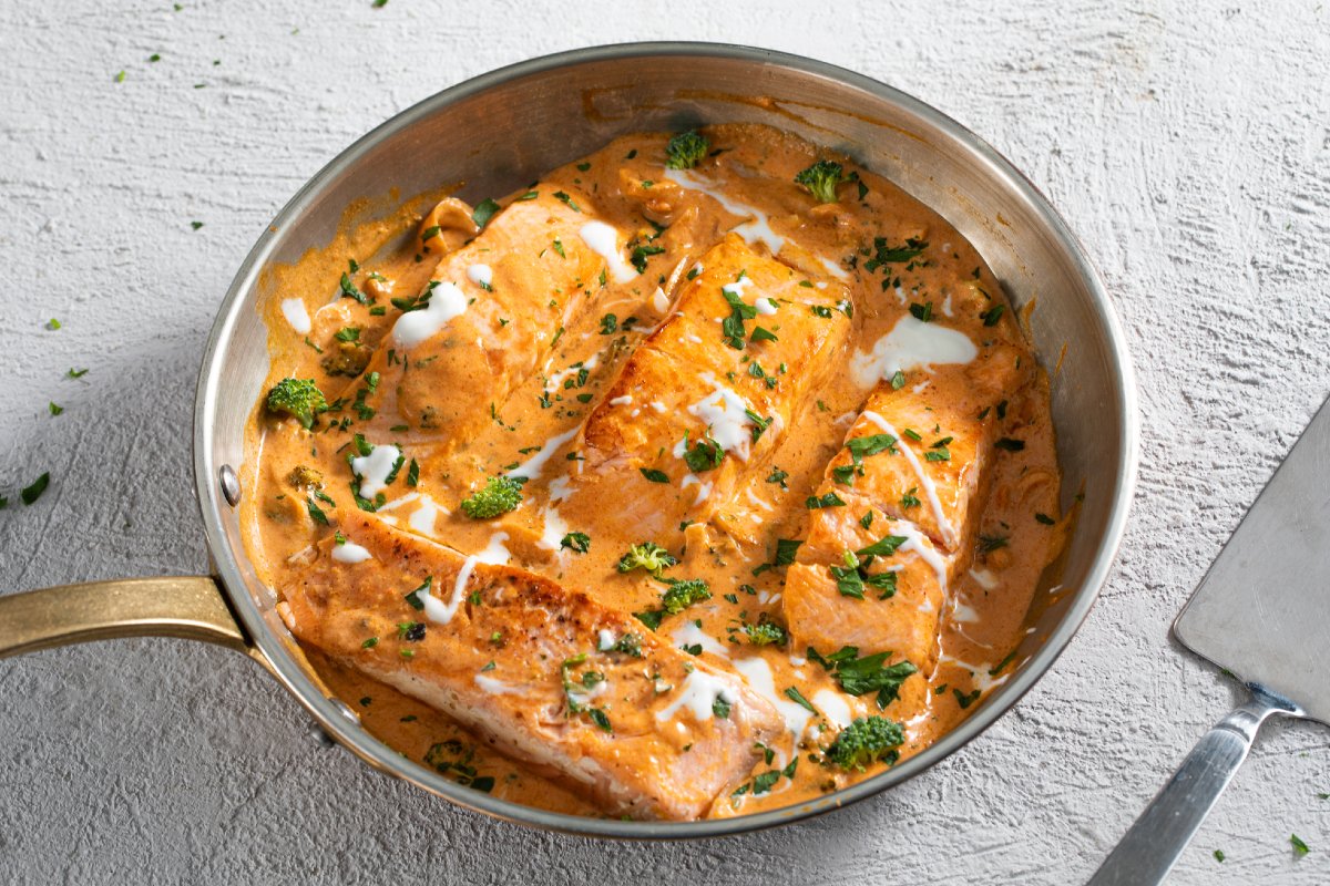 The rich and buttery flavor of fresh salmon can be enjoyed in simple preparations like baked salmon or crispy salmon, but you'll appreciate it even more in this version! The salmon with curry and coconut milk is an exotic recipe where the aroma of spices meets a creamy and enveloping sauce. We also added broccoli, along with the tangy touch of lime and yogurt. Like many other dishes from Indian cuisine, such as Tandoori Salmon, the salmon with curry and coconut milk is ideal to be accompanied with basmati rice or Naan and can be served as either a main course or a one-dish meal!