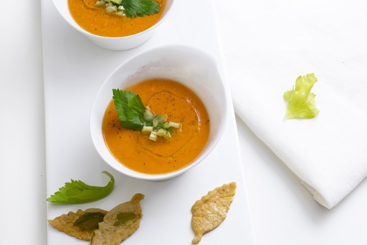 In the heart of Andalusia, serving this traditional Andalusian dish as an appetizer is a go-to move—especially when heavy meals are a no-go. What sets this salmorejo recipe apart is the addition of those celery crackers, giving each bite a snappy texture and extra flavor. While salmorejo is often compared to gazpacho, its creamier and velvety texture—so so smooth—comes from all the bread blended into it. The mix of textures—the silky soup and the crispy crackers—works beautifully, especially if you make homemade celery crackers. People love how this is one of those easy summer recipes you can prep in advance, earning its reputation as a refreshing and healthy appetizer in Spanish cuisine. Here's the deal: pairing bread-based soups with something light and savory like celery is common around Córdoba, but you'll find each place has its unique twist. Whether you're putting this together for a quick lunch or want a cool start to dinner, easy salmorejo preparation really points out the beauty of simple ingredients and local touches. I mean, it's a flavorful journey to Andalusia right from your kitchen, where you can enjoy a taste of Spain's bright culinary heritage without breaking a sweat. Can't go wrong.