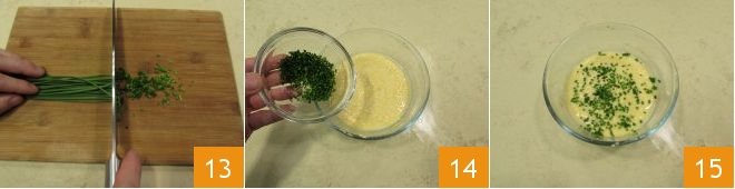 Finely chop the chives with a knife 13 and add them to the sauce 14. Mix again and at this point, your Bolzano sauce is ready to season your dishes 15!