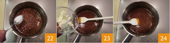 Pour in the sea salt flakes 22, and finally add the cold butter 23 and mix everything together 24.