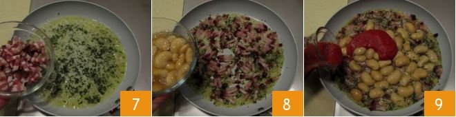 Mix the ingredients well and continue cooking for 12 minutes, over high heat 10. In the meantime, when the water has reached a boil, cook the gnocchetti for the time indicated on the package 11. Once cooked (preferably al dente), drain them with a slotted spoon 12,