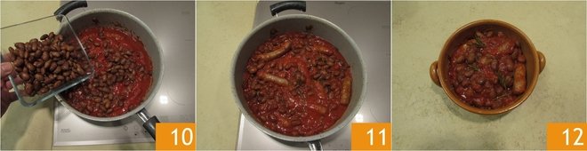 Add them to the sauce, continuing to cook for another 10-15 minutes 10, allowing the flavors to blend well 11. At this point, your dish of sausage and beans is ready. Add some chopped rosemary, a drizzle of raw oil, and serve 12!