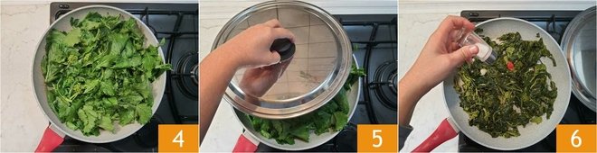 heat everything and then add the friarielli as well 4. Cover with a lid and cook the friarielli until they are nicely wilted 5. Stir often with a wooden spoon and add salt halfway through cooking. Remove them from the heat when they are soft and wilted 6.