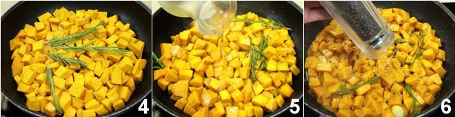 and the chopped rosemary 4 and sauté them in a pan until the pumpkin is nicely browned.