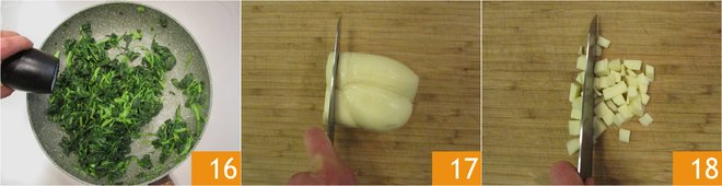 Salt and set aside 16. Cut the provola into strips 17 and then into small cubes 17, then chop it 18.
