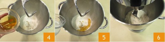 the honey 4 and the milk 5. Start kneading 6