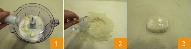 To prepare the mushroom and lentil savory pie, start with the Easy Shortcrust Pastry base. In a mixer, add flour, cold butter pieces, and a pinch of salt 1, and blend until you get a sandy mixture. Transfer the floury dough onto a work surface and briefly knead it, adding cold water a little at a time 2. Work it as little as possible to prevent the butter from melting until you get a compact and elastic dough. Wrap the dough in plastic wrap and let it rest in the refrigerator for at least 40 minutes 3.