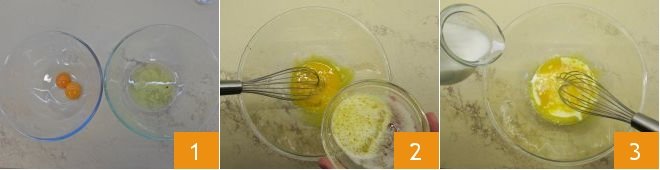 until you obtain a smooth, homogeneous batter 7. Now beat the egg whites with electric beaters 8 until they are white and frothy 9.