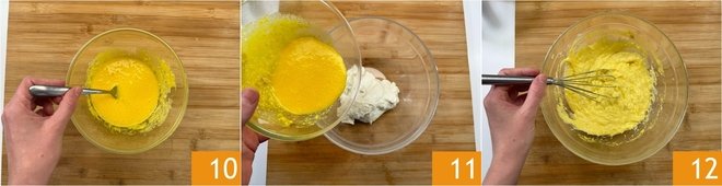 Stir to combine 10. When the bechamel has cooled, add the egg mixture 11 and mix with the whisk until you get a smooth cream 12.